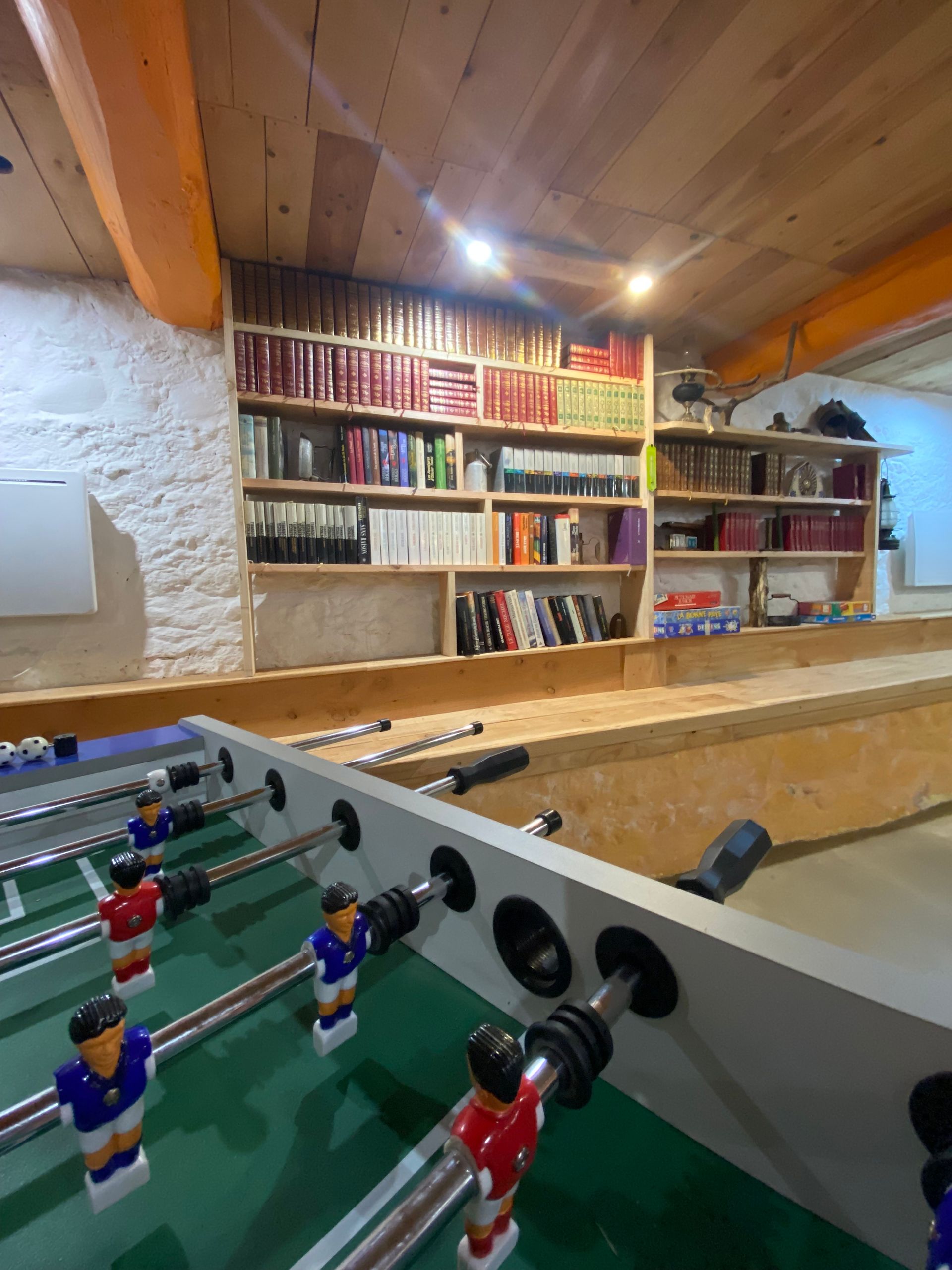 La salle d'eau, avec son originalité assumée, vous surprendra par son bac de douche façonné dans un ancien pétrin, clin d'œil à l'histoire et au recyclage créatif qui nous tient à cœur.